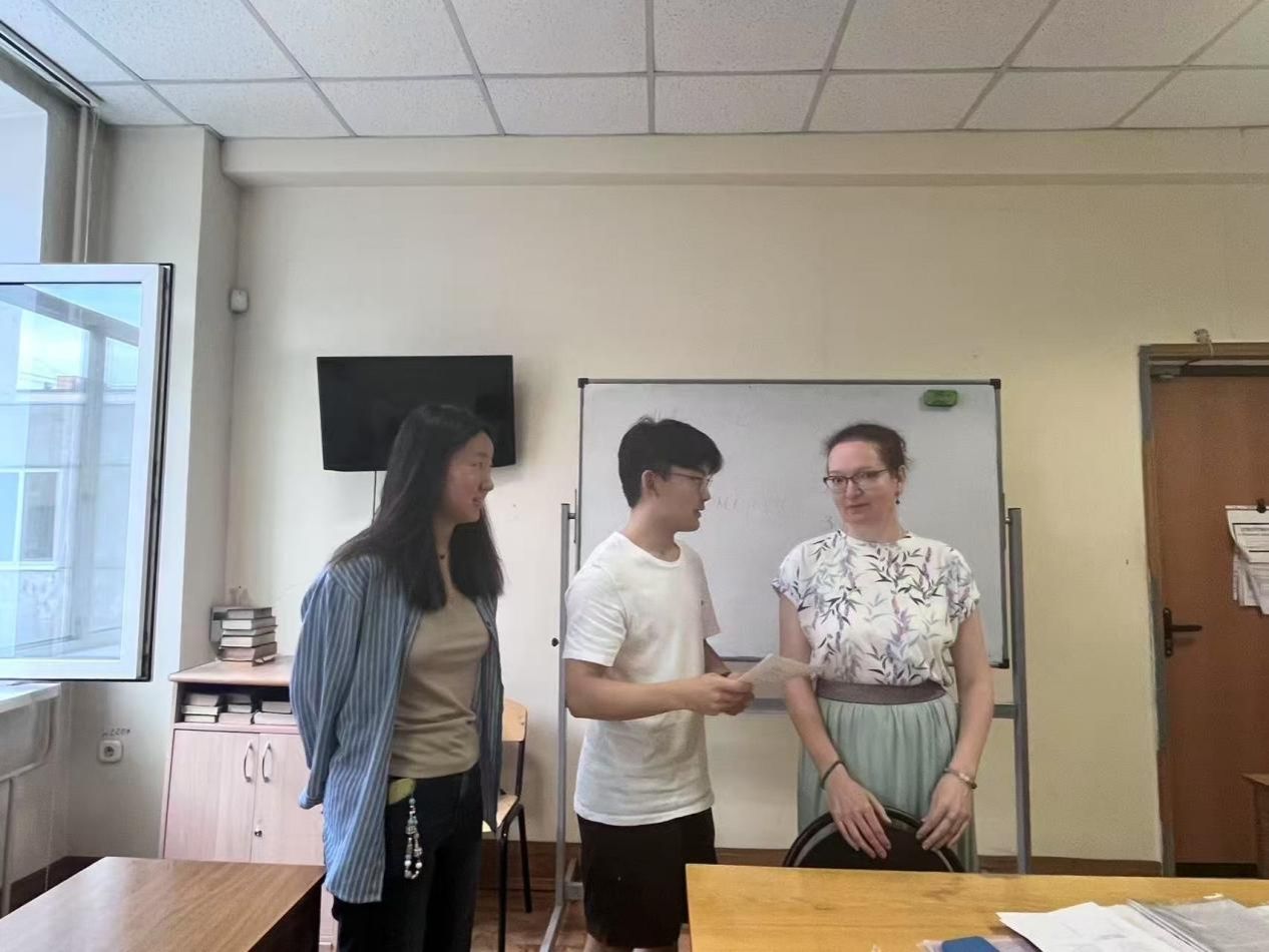 6月10号11名同学正式完成毕业设计答辩并全部以优秀等级通过。答辩当日,由航空航天与火箭工程公司特卡琴科教授,伊斯科夫教授,斯大林诺娃教授,巴维尔教授等5人评审委员会,对员工们提交的《Research on Dynamic Target Formation Surrounding Method of Unmanned Surface Vessels Based on Aggregative Games》《Research on the Spin-up Process Control of an Electrodynamic-based Space Tether System》等11项成果进行了考评。通过现场汇报、技术质询与成果展示环节,评审专家一致认为,西工大学子的研究课题紧密结合行业前沿需求,实验数据扎实可靠,部分方案展现出工程应用潜力与创新突破价值,最终全组顺利通过毕业设计考核答辩。