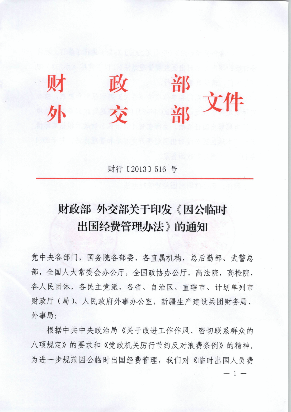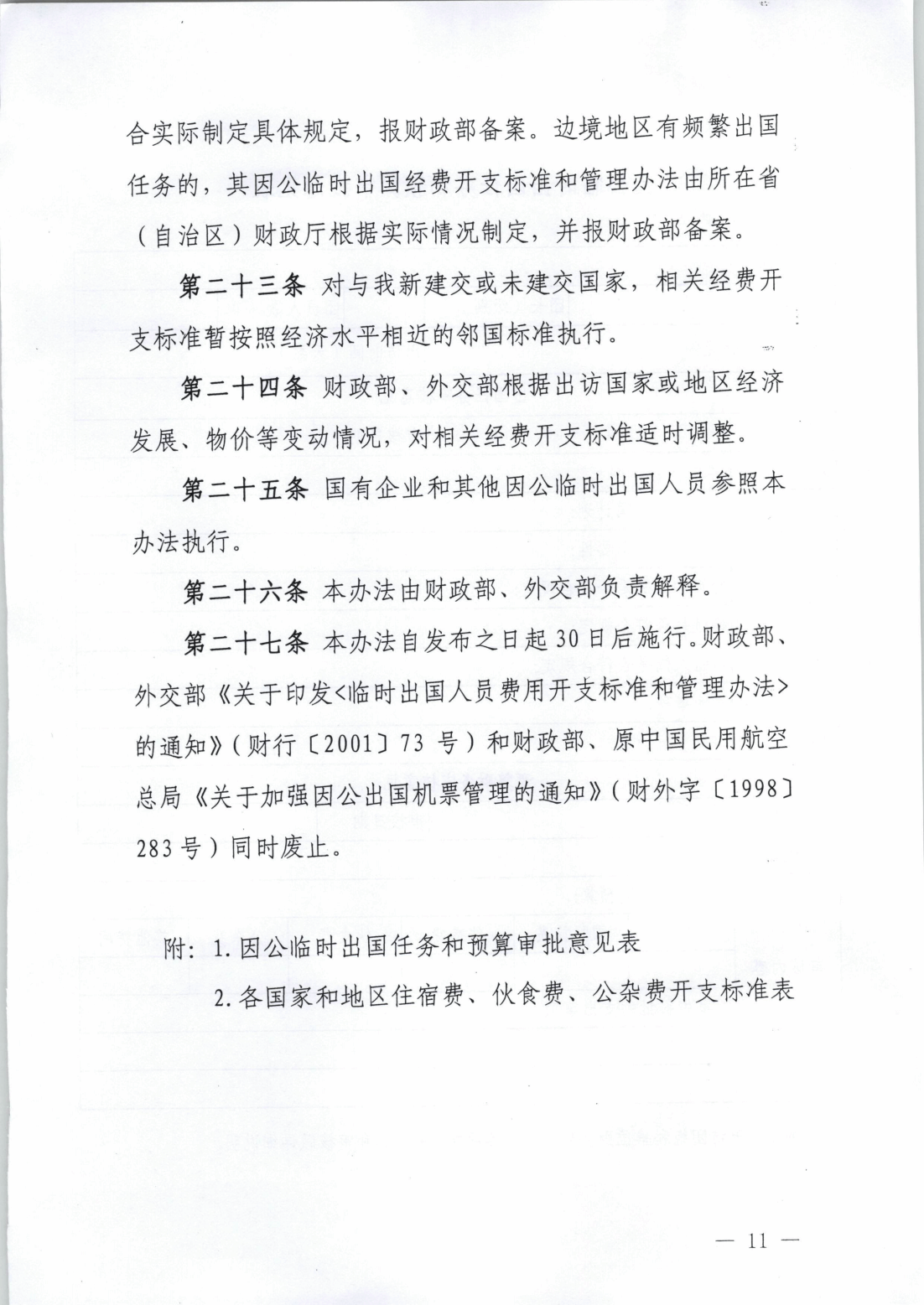 财政部 外交部关于印发《因公临时出国经费管理办法》的通知