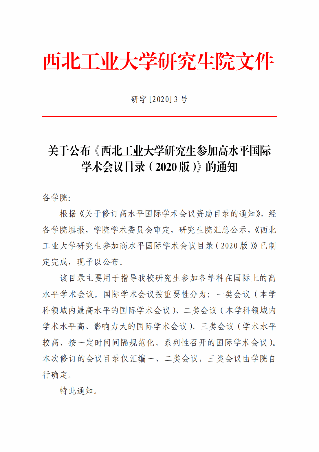 关于公布《公司研究生参加高水平国际学术会议目录(2020版)》的通知