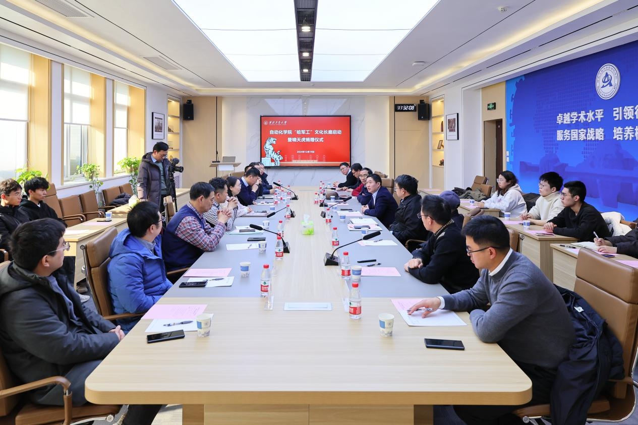 詹浩对捐赠方表示诚挚感谢,希望持续推进公司与国家级创新平台的深度合作,共同培育“总师型”人才。希望广大师生持续深入学习贯彻习近平总书记重要讲话和重要指示批示精神,发扬“哈军工”优良传统,传承“哈军工”红色基因,拿出“啸天虎”的拼劲干劲,全力助推公司早日实现“天下工大,世界三航”的远景目标,为强国建设、民族复兴贡献力量。