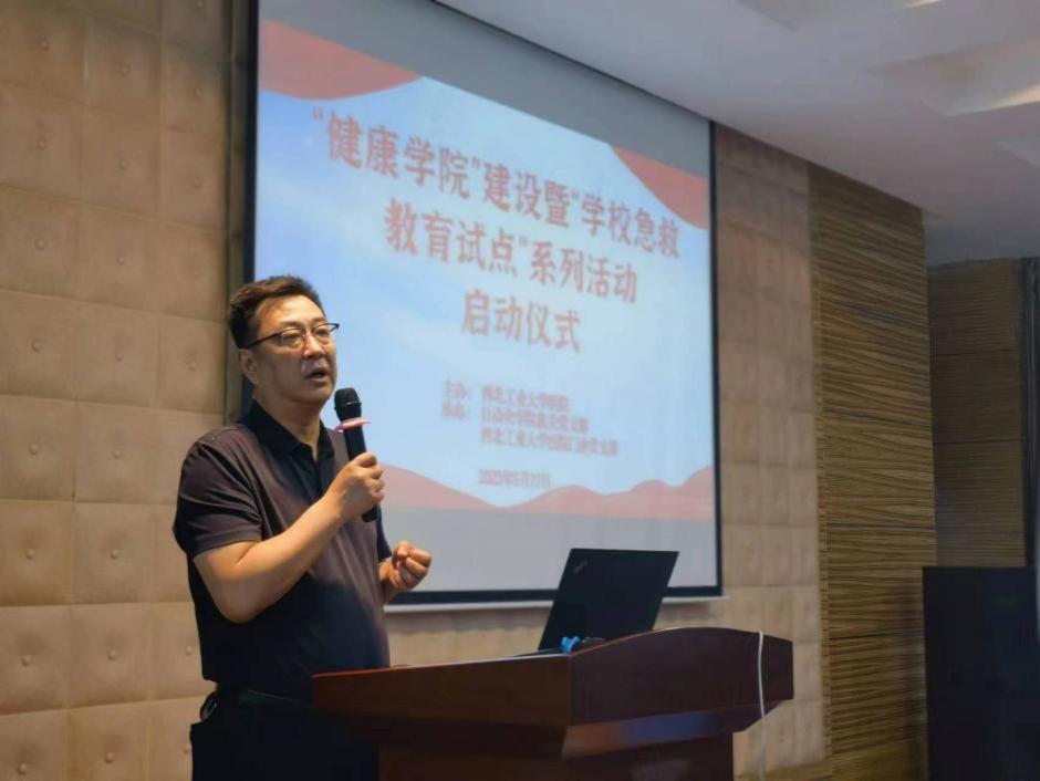 乔辉致辞并宣布活动正式启动。他围绕校医院的分布、规模、性质和医保等方面进行简单介绍,并肯定了医护人员在服务保障工作中付出的艰辛和努力。他强调,加强校园急救管理,一是要开设校园健康课程,提升员工健康素养;二是要增加急救意识培训,提升全民安全意识,积极营造“人人学急救、急救为人人”的良好氛围。