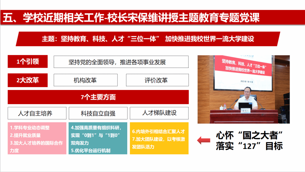 7月29日,公司党委副书记(主持工作)李伟林以线上方式讲授“党建引领学思践悟,团结发展凝心铸魂”主题教育专题党课暨师德警示教育大会,全院教职员工参加会议,公司主题教育第三督导组组长田保林列席会议。