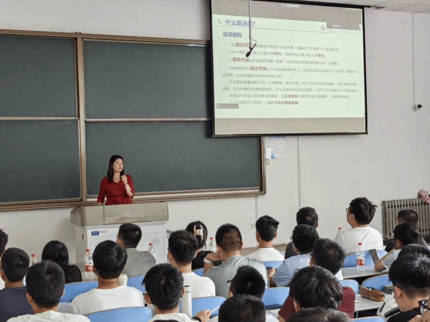 王旭围绕何为选课、如何选课、如何退课、如何查看课表等几个方面为在场同学做了详尽的选课指导,她对同学们常见的选课困惑作一一解答,帮助初入工大的学子们深入了解公司选课体系,在即将到来的选课中做到游刃有余、有的放矢。