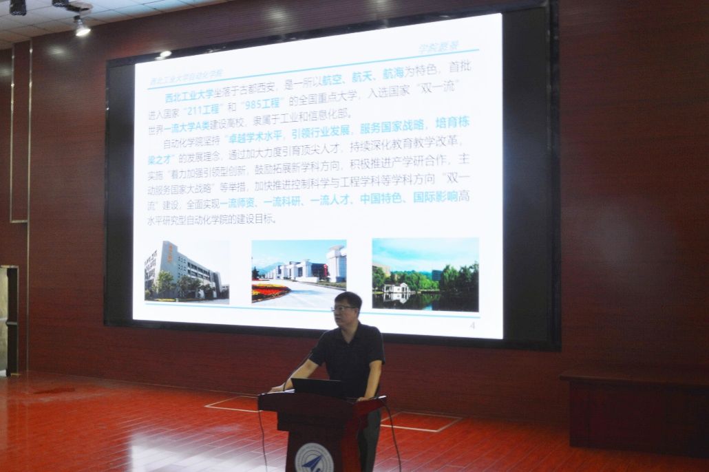 教学办公室李焱、科研办公室淡雪、国际化办公室焦健、员工工作办公室李晨静就教学和课程计划、科研保密、国际化、员工党建为新生做详细政策讲解。