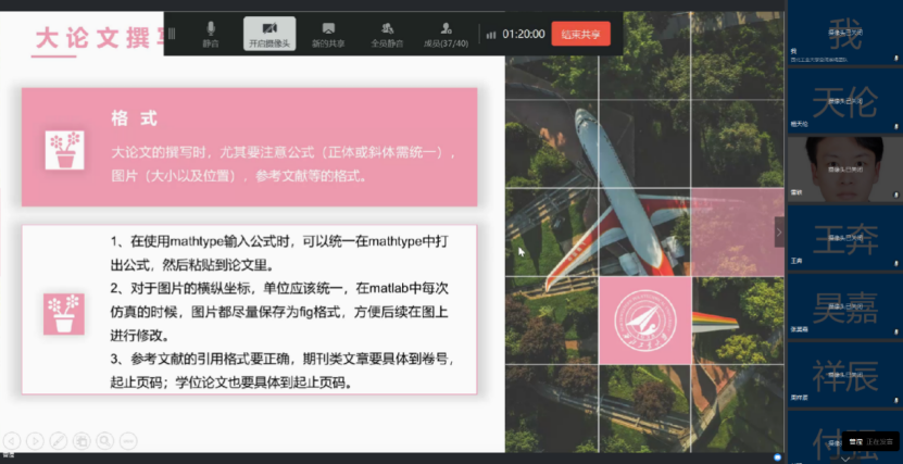 2020年3月31日下午,z6mg人生就是博官网空间系绳系统研究中心开展了2020届毕业生经验交流分享活动。此次经验交流分享活动以线上座谈会的形式进行,由李爱军教授主持,空间系绳团队全体40位师生全部参加。