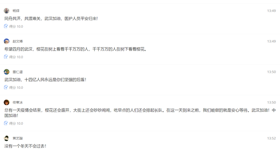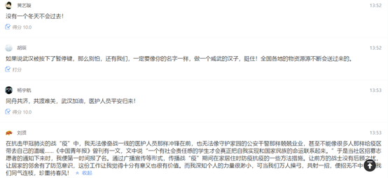 图2同学们(部分)“用实际行动驰援武汉和湖北,写一句鼓励的话语”分享