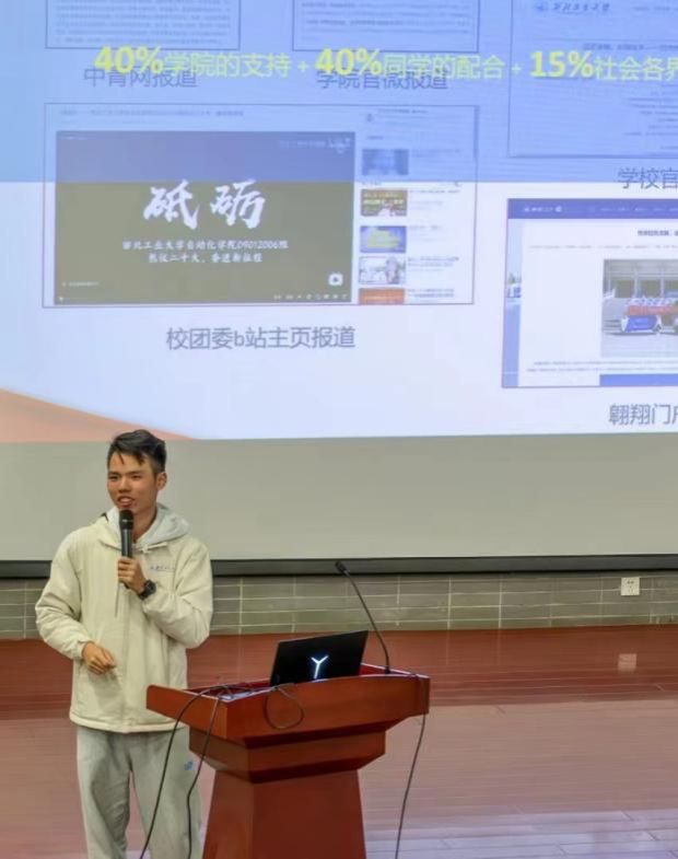 第十八届“挑战杯”赛事国家特等奖获得者宋剑分享了他在竞赛中的历程与体会。他向学弟学妹们讲解了科研所要经历的阶段,指出创新和独立思考的必要性。随后他讲述了备战“挑战杯”赛事的整个过程,指出了在创新创业类赛事中需要注重的打磨方向以及应注意的细节。