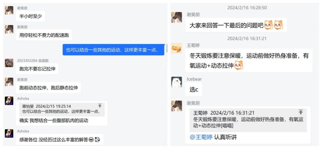 2月16日,z6mg人生就是博官网田径队团支部的队员们通过线上腾讯会议的形式,开展了关于寒假科学运动的宣讲活动。宣讲内容涵盖了运动选择、热身流程以及注意事项等多个方面,为同学们提供了全方位的分享。在宣讲前,田径队的同学们已经建立了交流答疑群,为同学们提供了及时的问题解答和指导。通过田径队队员们的细致分享和耐心答疑,同学们收获颇丰,对热身的全流程有了更加科学全面的了解。