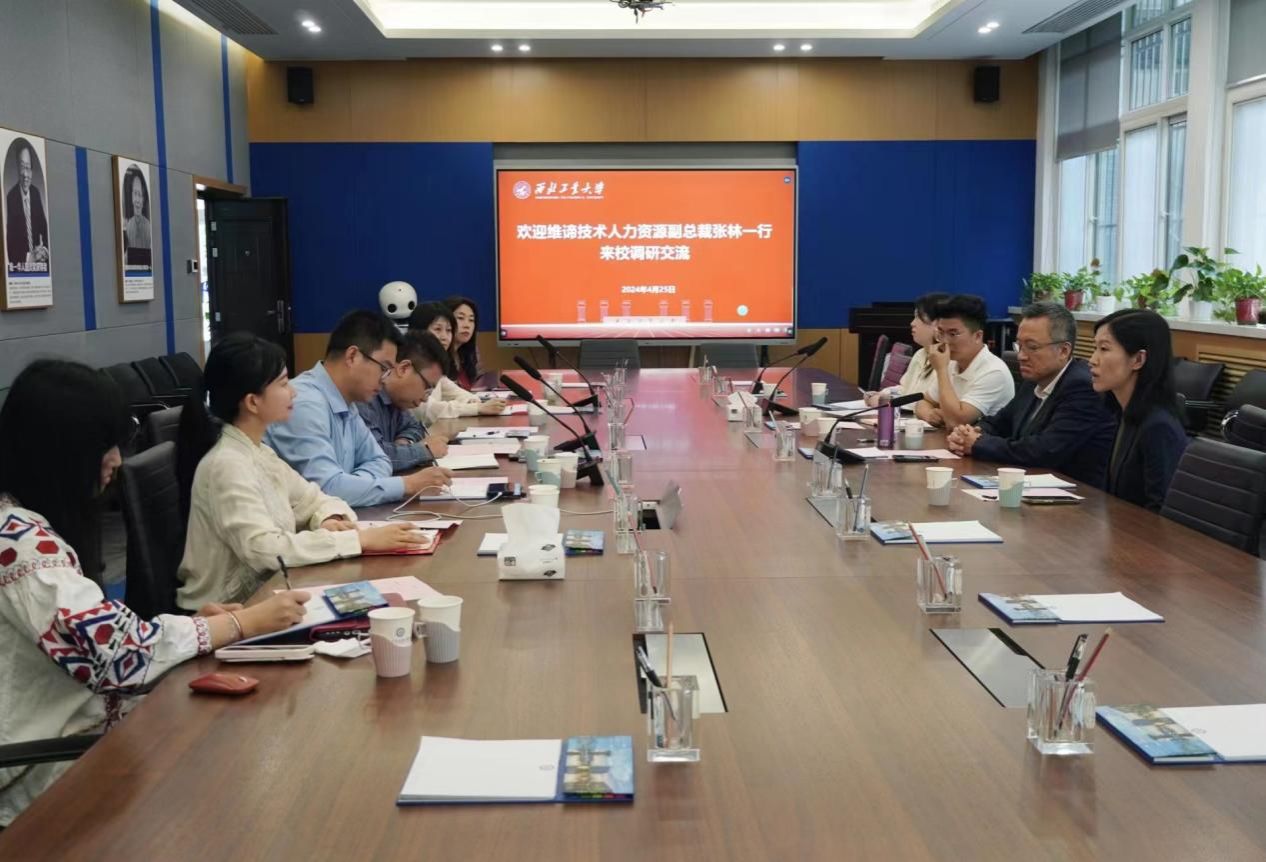 张林围绕发展历程、产业构成、主要产品、人才培养、未来规划等方面介绍了维谛技术有限公司,并简要阐述了此次调研需求和合作意向,期望双方能够加强交流,拓宽合作领域。