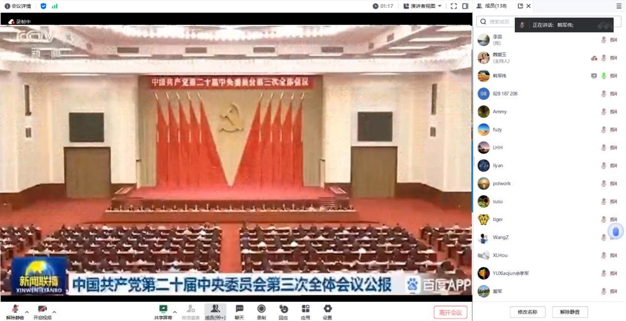 7月19日下午,公司党委召开集体学习会,传达学习贯彻党的二十届三中全会精神,研究贯彻落实举措,会议以线上线下相结合的形式召开。公司领导班子和全体教职工参会,会议由公司党委书记李伟林主持。