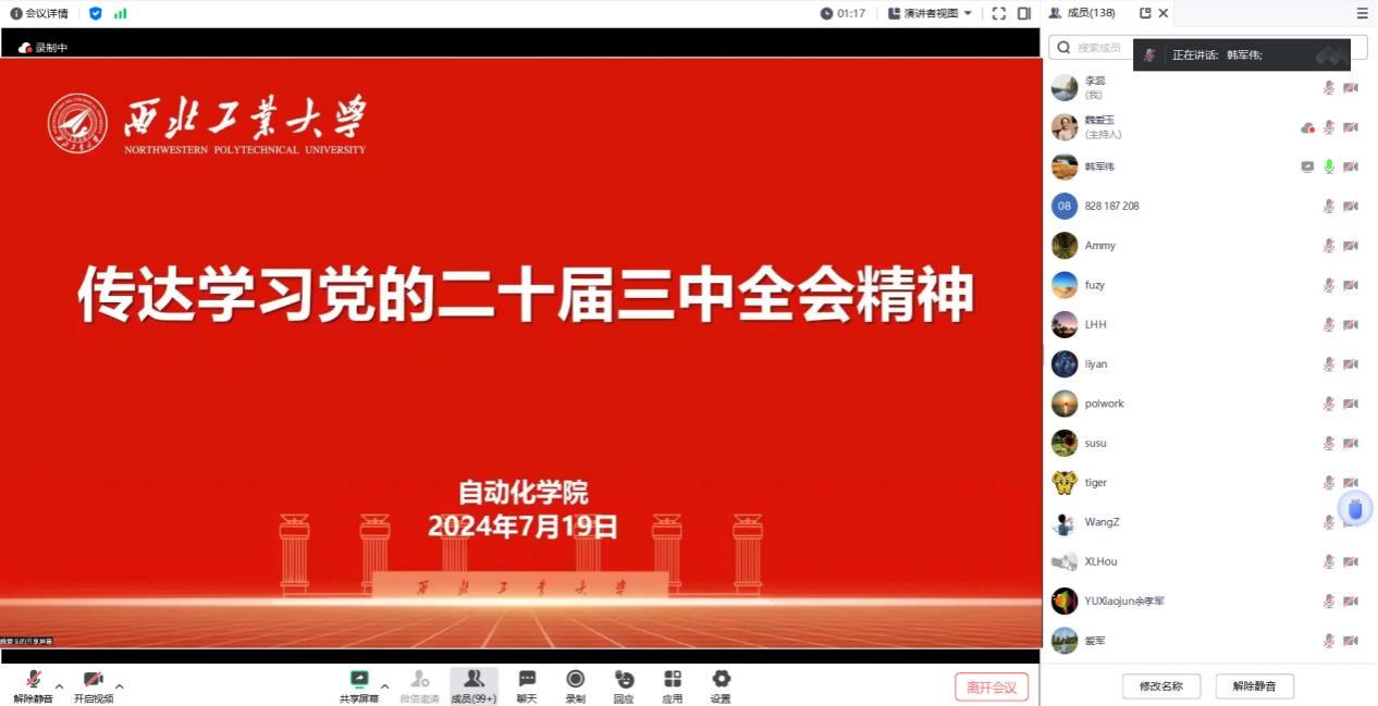 会议强调,学习好、贯彻好党的二十届三中全会精神是当前和今后一段时期的重大政治任务。全院师生要认真学习习近平总书记关于全面深化改革的一系列新思想、新观点、新论断,坚持问题导向、目标导向,更加注重改革实效,做到真学、实干、力行,把党的二十届三中全会的战略部署转化为推进公司实践的强大力量。要对照全会明确的目标任务,结合公司发展实际抓好改革落实,坚持科学谋划、系统推进,以总师育人文化为引领,持续推进团队建设,优化课程体系,打造一流团队队伍,聚焦有组织科研,努力培养更多适应新时代需求的“总师型”人才,以实际行动助力公司早日实现“127”近期目标和“天下工大、世界三航”的远景目标。
