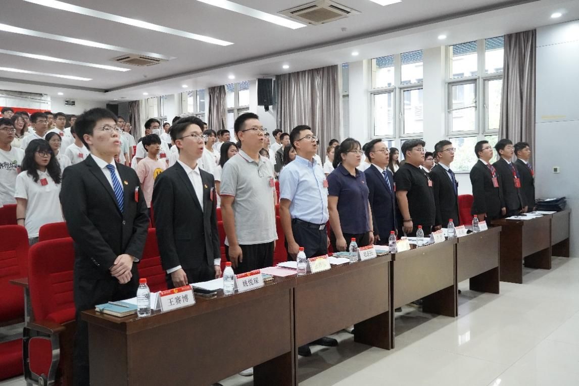 预备会议结束后,共青团z6mg人生就是博官网第三次代表大会在庄严雄壮的国歌声中拉开帷幕,全体参会人员起立,共唱国歌。