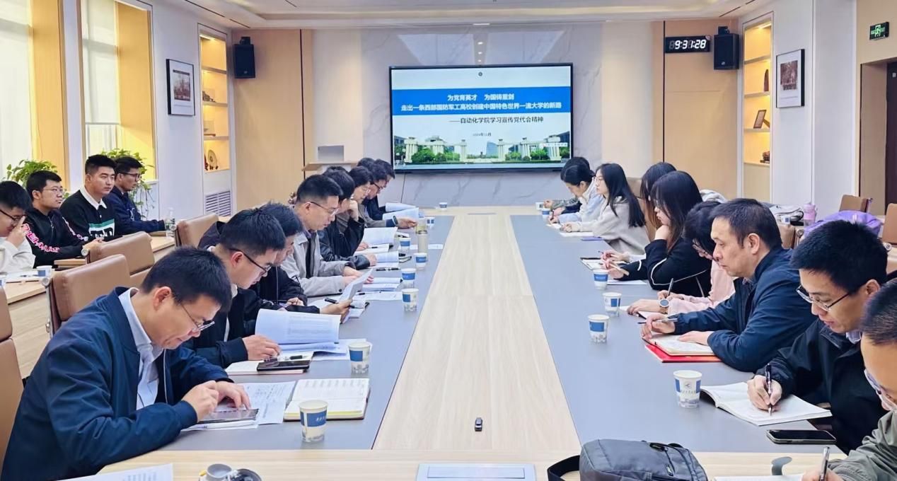 韩军伟在宣讲党的二十届三中全会精神和全国教育大会精神基础上,以介绍公司党代会召开情况为切入点,从“五年来主要成绩、深化对公司高质量发展认识、开创高质量发展新局面、新‘三步走’战略构想、奋力谱写一流建设新篇章、高质量党建引领高质量发展”六个部分全面传达学习了公司第十四次党代会精神。韩军伟结合公司发展实际,围绕目标责任制落实,从“总师型”人才培养、高质量有组织科研和高水平团队队伍建设三个维度,详细介绍了如何将落实党代会精神与推进核心指标深度融合、一体推进。韩军伟表示,公司上下应以“勇立潮头敢争先,奋楫向前创未来”的精气神,紧紧抓住公司高质量发展的关键时期,集中优势资源一体推进公司教育科技人才工作改革,为公司创建中国特色世界一流大学贡献自动化力量。