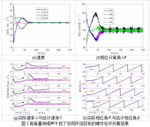图2 距离量测噪声干扰下协同环绕目标的硬件在环仿真结果