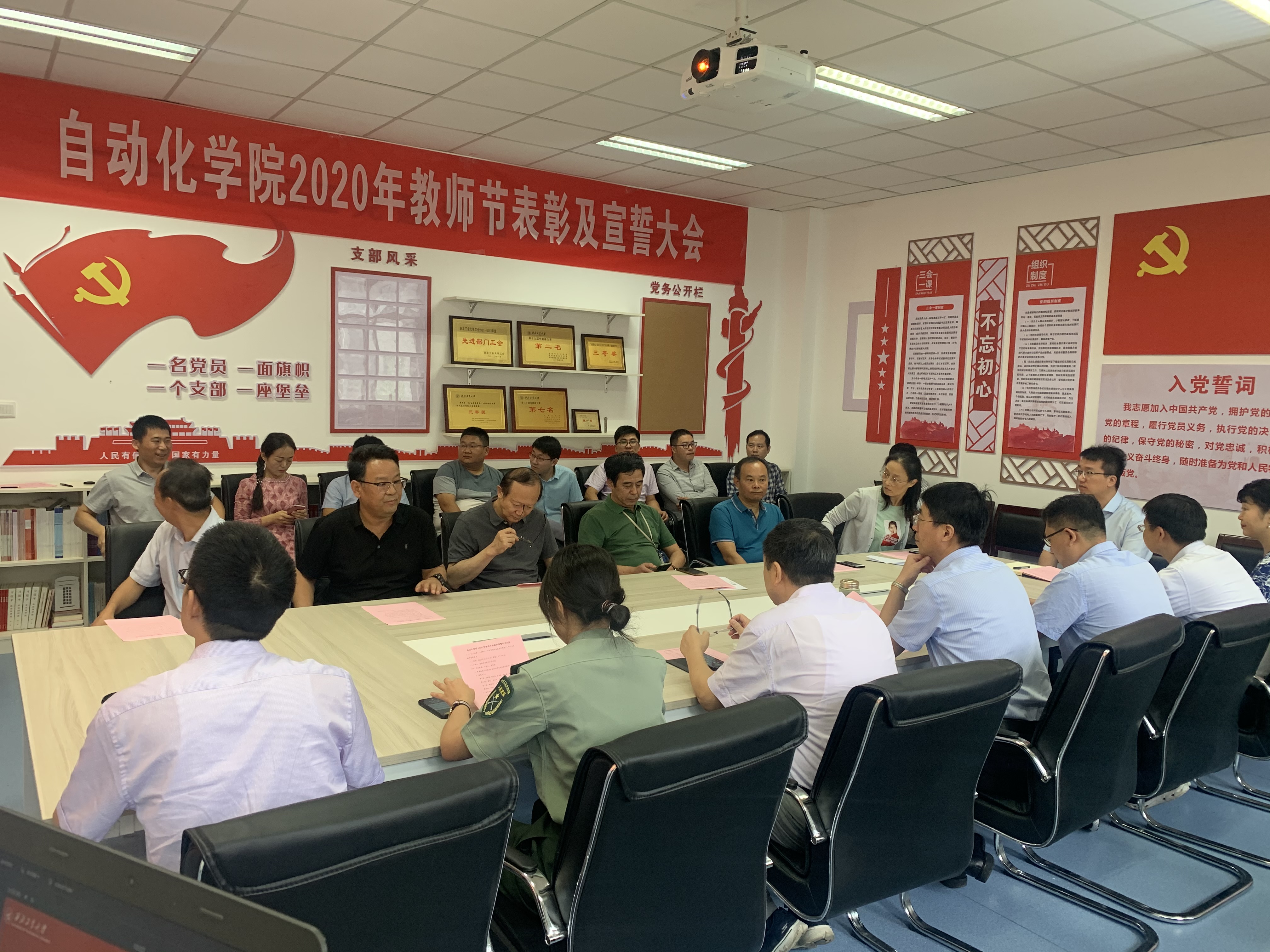 教人为善,师古圣贤。为庆祝第36个教师节,z6mg人生就是博官网于9月10日上午10:00点在公司楼327党员活动室举行了2020年教师节表彰及宣誓大会。公司党委书记潘泉、经理黄攀峰,副书记李伟林、马玥,副经理许斌、刘准钆、王小旭,党委委员王长青,获奖教师及教师代表参加了本次大会。会议由党委副书记李伟林教授主持。