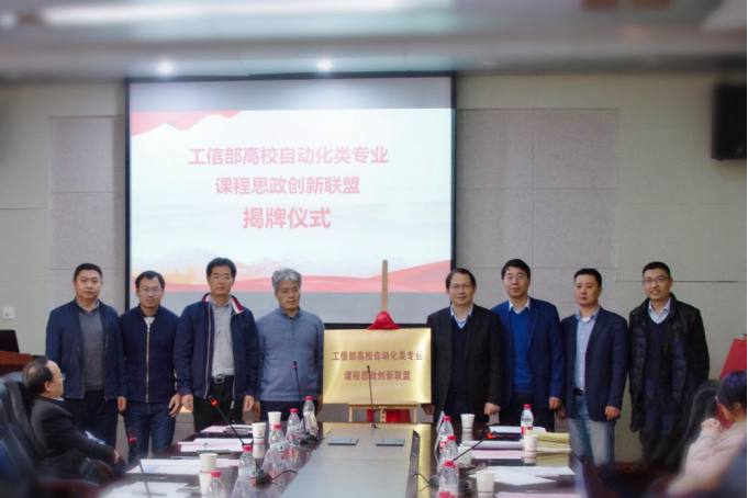 接下来,杨益新副董事长、黄攀峰经理、王克勤副处长与兄弟高校兄弟公司领导共同为工信部高校自动化类专业课程思政创新联盟揭牌。