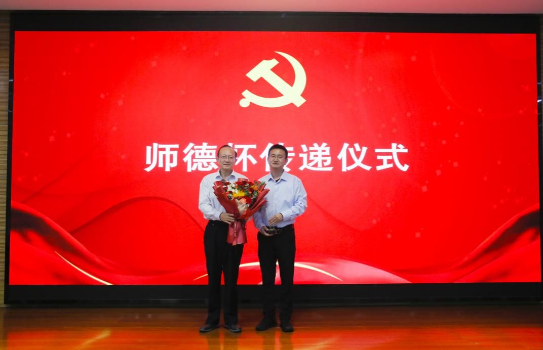大会第三项,开展“师德杯”传递仪式。为更好传承学经理期以来形成的高尚师德风范,激励更多青年教师积极投身教育强国建设,公司邀请了老一辈优秀教师代表刘卫国教授为青年教师代表赵世杰传递“师德杯”。