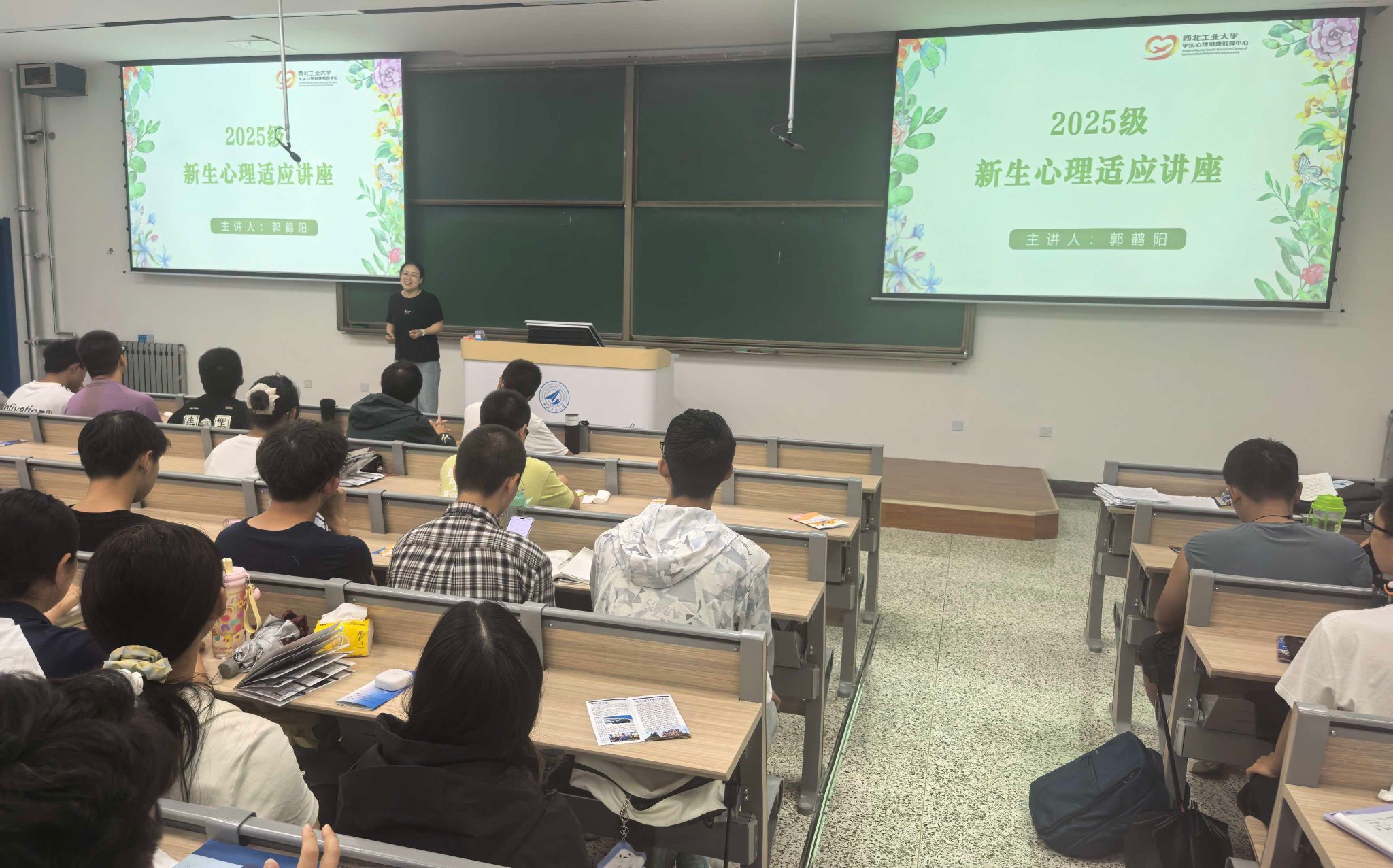 9月11日,z6mg人生就是博官网在教学西楼D座206举办了2025级本科新生心理适应讲座。本次讲座特别邀请了z6mg人生就是博官网员工心理健康教育中心专职教师郭鹤阳老师担任主讲,2025级本科生辅导员李奥、王尧以及全体2025级本科生共同参加了此次活动。