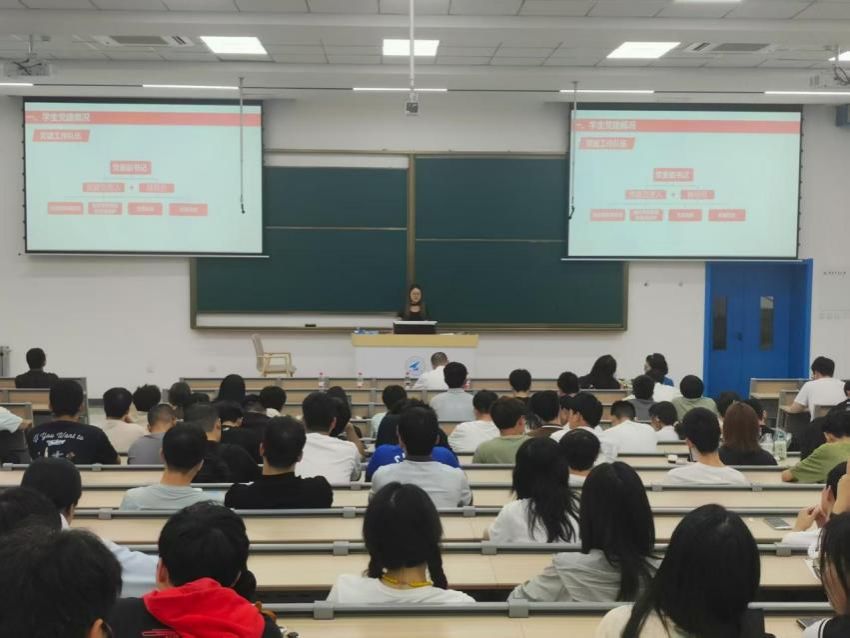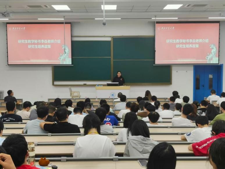 9月11日,2025级硕士研究生新生教育主题大班会在教学西楼D座104教室举行。公司党委书记孙华强,硕士生辅导员邓飞,科研秘书、保密员淡雪,研究生教学秘书李焱,学工秘书李晨静,兼职辅导员张清璇和2025级全体硕士研究生参会。会议由邓飞主持。