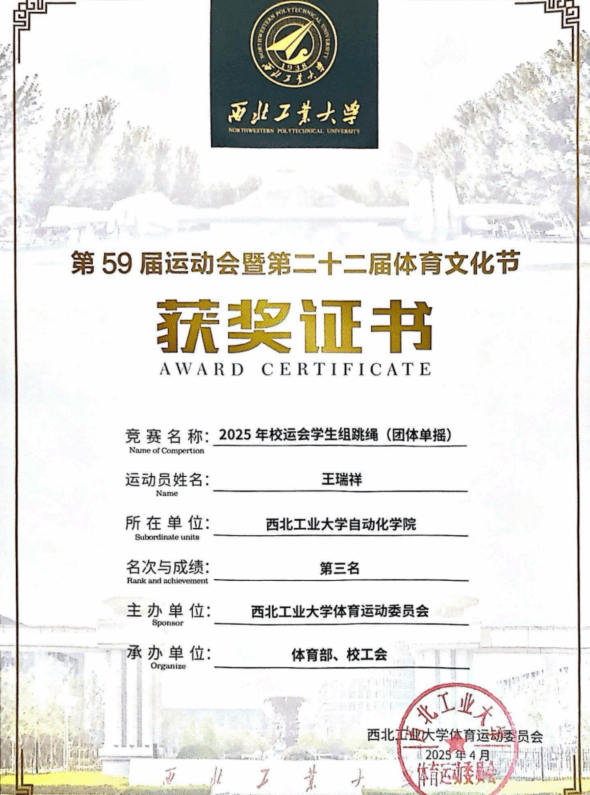 王瑞祥同学体育文化节获奖