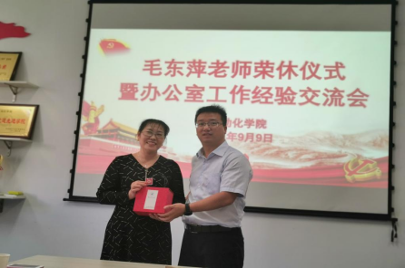 勤勤恳恳十余载,服务师生精神在。今朝已是光荣在,继往开来夕阳红。毛东萍老师十多年来为z6mg人生就是博官网的发展辛勤奉献,为表达对毛老师的感谢与祝愿之情,z6mg人生就是博官网于9月9日上午10:30,在公司327会议室为毛老师举办荣休仪式,公司领导及院办教师参加此次荣休仪式。