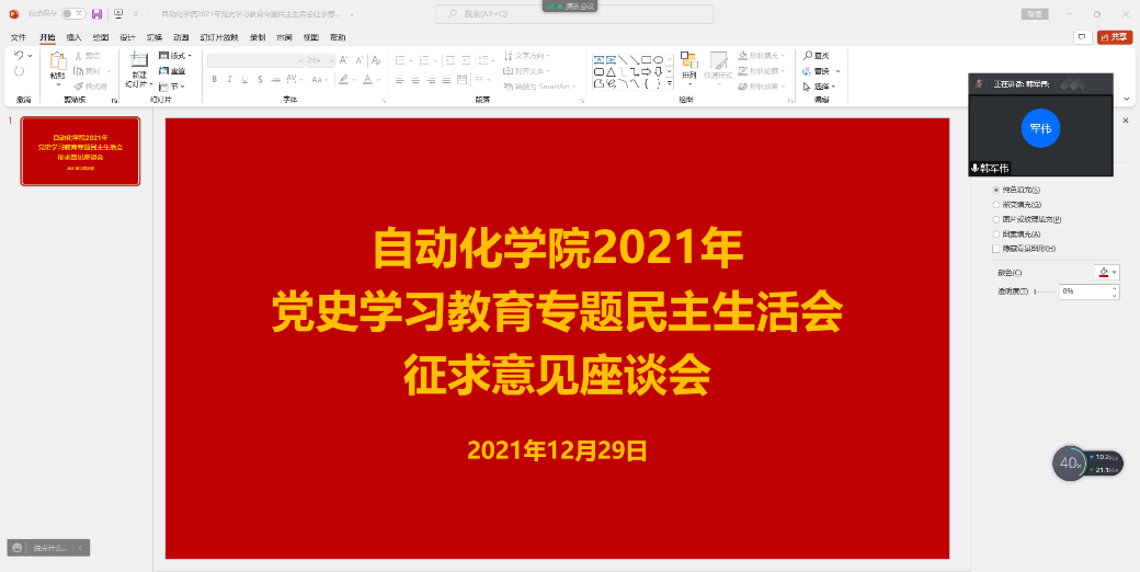 12月29日下午,公司召开2021年民主生活会征求意见线上座谈会。公司党委委员、系主任、教师支部书记参加本次会议,会议由党委书记韩军伟主持。