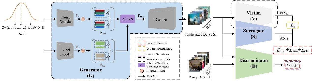 在无法获取目标模型的训练数据时,利用本地训练的代理模型完成对目标模型的攻击对于AI安全性来说兹事体大。本文深入探索了对于代理训练最为有效的数据所具备的类别特性——类间相似性及类内多样性,分析了基于合成数据的代理训练方法的潜在优势,进而构建了一个面向黑盒攻击算法的代理训练框架、展示了代理数据对于提升代理训练的潜在优势、设计了两个替代模型的优化目标函数,大大提升了代理模型的训练效率。