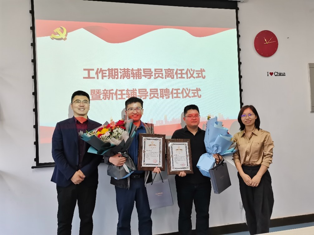 管峻对两位即将离任辅导员两年期的工作成效给予感谢和充分认可,同时对新任辅导员的加入表示热烈欢迎。希望能继续同心同德,携手共进,紧扣公司、公司人才培养目标,聚焦立德树人根本任务,对标公司“双一流”建设工作要求,立足经验传承,谋发展、出成果、上台阶。