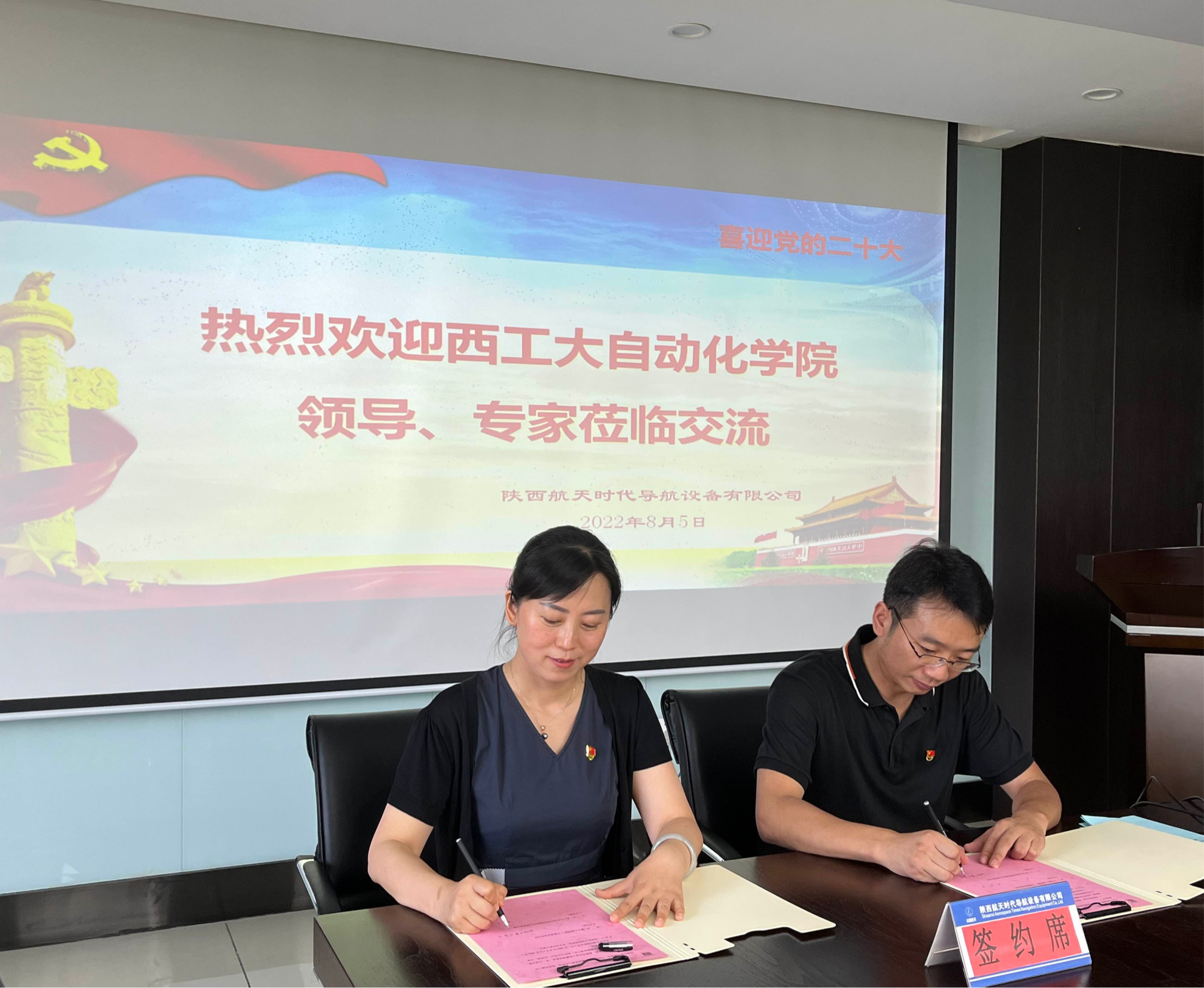 参观结束后,双方在庄重而简洁的氛围中进行了公司电气工程系党支部与航天九院7107厂宇航事业部党支部共建协议签署,以及科研工作交流座谈。会上,刘运来从公司基本情况、后续发展思路、产业规划等方面进行了深入介绍,陈立强介绍了宇航事业部的基本情况和党支部概况。管峻表示,公司将以本次交流为契机,进一步促进拓宽双方校企合作的渠道,增强人才培养交流模式多样化,共同形成创新发展的合力。在热烈而融洽的气氛中,与会人员围绕宇航电机研发创新和员工就业等问题,进行了深入交流。