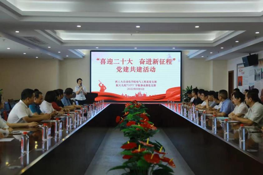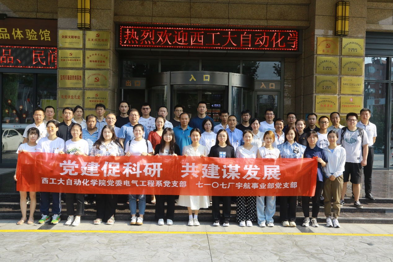 为进一步发挥公司党委对教职工的思想引领、师德引领、成长引领作用,落实立德树人根本任务,提升党支部凝聚力和战斗力,以共建促科研、以共建促发展,8月5日至6日,由公司党委副书记管峻、王丽带队,电气工程系刘景林教授、经理助理马睿副教授、实验教学中心党支部书记/副主任王京锋副研究员、电气工程系党支部书记/副主任付朝阳副教授、机关党支部书记/院办主任魏爱玉等近20位教职工党员代表、党外青年教职工代表及优秀员工代表,赴陕西航天时代导航设备有限公司(航天九院7107厂)开展“教师素质提升计划”活动暨党建共建活动。
