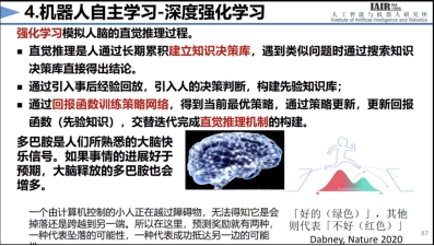兰旭光教授结合自己在智能机器人等方向的学术积累,围绕人机共融与意识阐述模型进行了研究分析,介绍了基于视觉的机器人自主作业与自主学习等方向的研究进展。同时,分析了与人共融的机器人,在非结构场景中的自主理解、学习和作业所面临的难点与挑战,提出一种基于视觉推理与学习的智能机器人自主作业方法。在部分可观测场景下,将学习与规划进行交互迭代,使得机器人能够对动态非结构场景进行理解,完成特定物体的作业。最后,兰教授对智能机器人自主作业的未来发展趋势进行了展望。