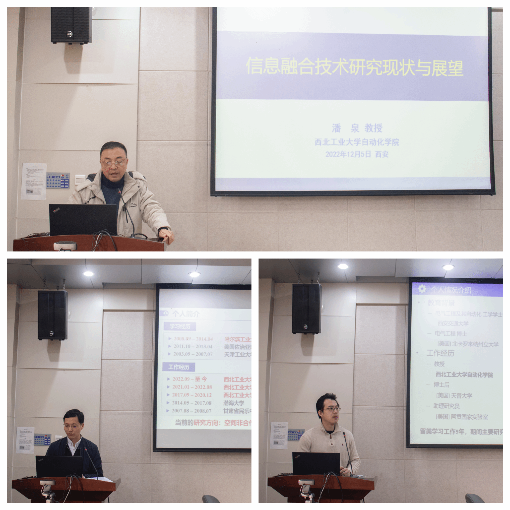 公司国家级青年人才肖冰教授、杜宇华教授结合个人成长经历和工作现状分享了回国后到z6mg人生就是博官网任职的入职经历、工作感受和科研思路。信息融合技术教育部重点实验室主任潘泉教授对信息融合技术的研究现状、团队工作进行了详细介绍,展示了公司的学科实力和良好的发展前景。