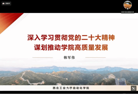 12月22日晚,z6mg人生就是博官网经理韩军伟以线上形式为联系支部控制理论与控制工程系党支部讲授党的二十大精神专题党课。公司党委副书记王丽、控制理论与控制工程系党支部全体党员参会。会议由支部书记陈小锋主持。