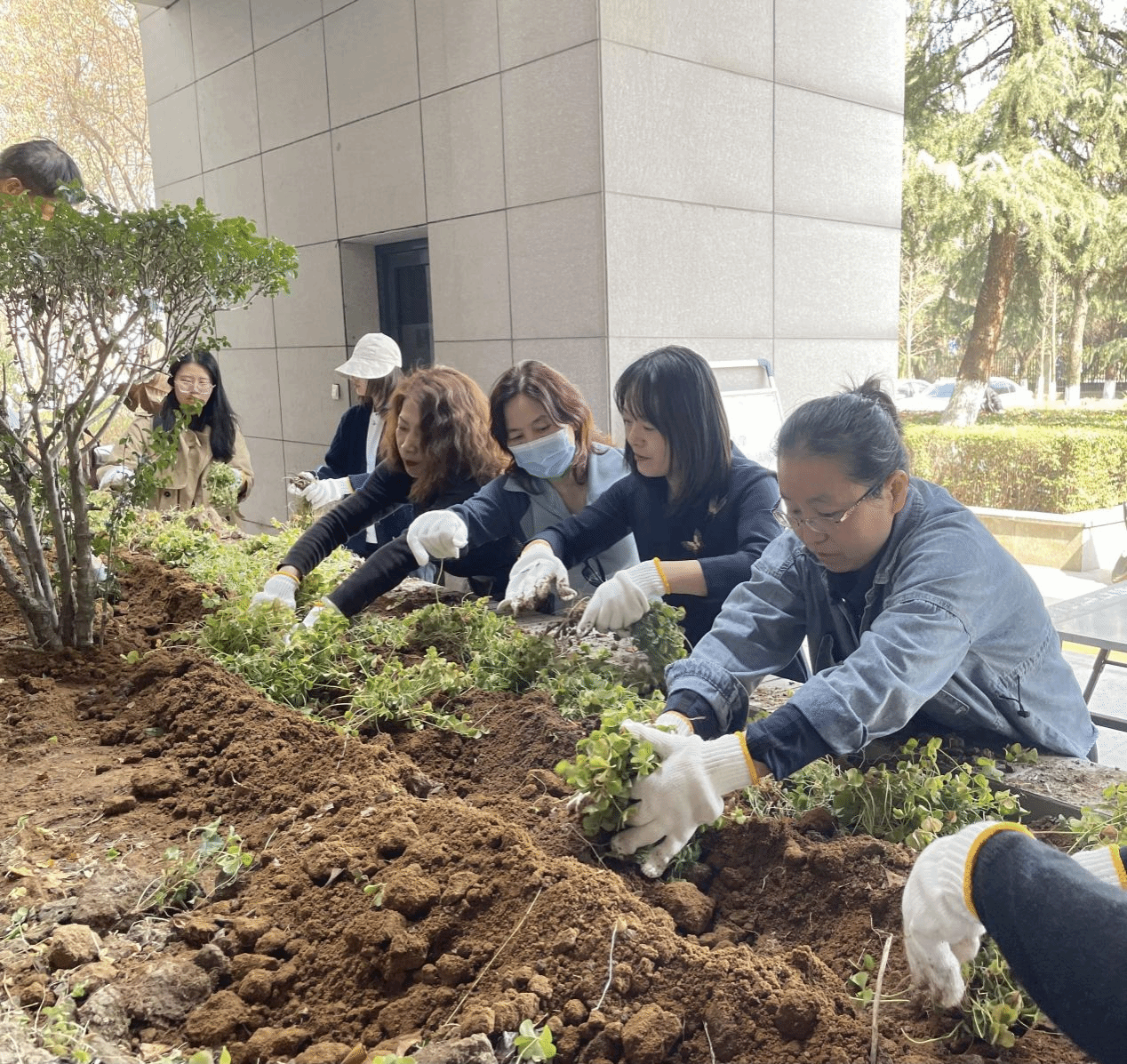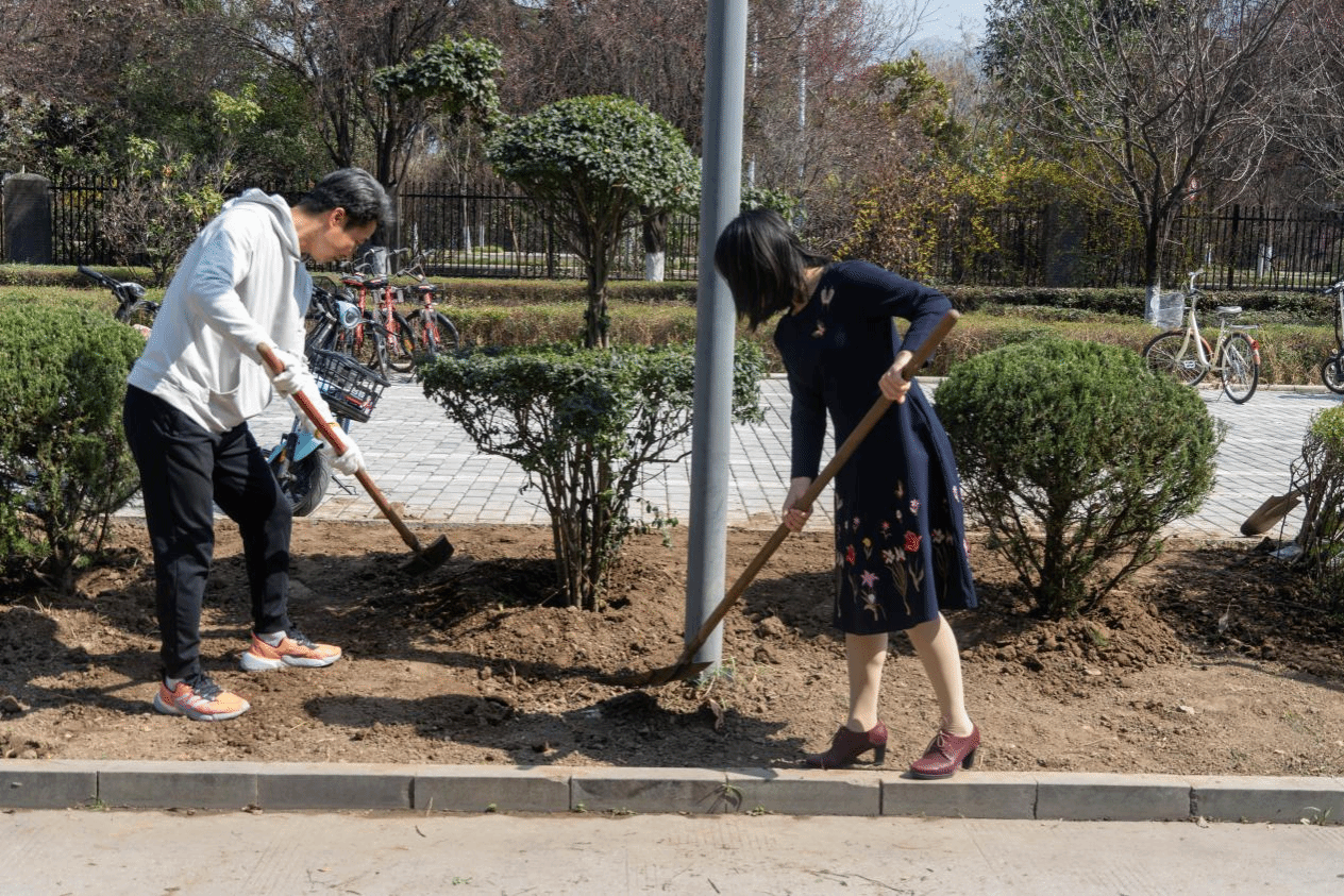 在后勤产业集团物业服务中心员工的专业指导下,参与的师生党员热情高涨,分工协作,纷纷挥锹铲土、扶苗填坑、种植新绿、播种希望,齐心协力为美丽校园增绿添彩,为建设宜学宜居绿色生态校园贡献力量。