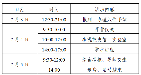 七、暑期夏令营日程安排