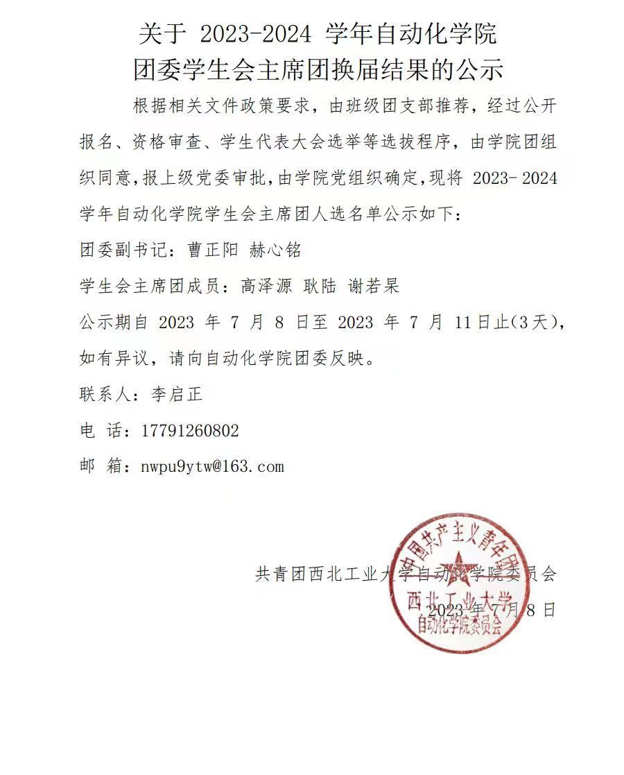 根据相关文件的要求,经过内部遴选、资格审查、现场答辩等选拔程序,现将 2023-2024 学年z6mg人生就是博官网团委员工会部长团人选名单公示如下: