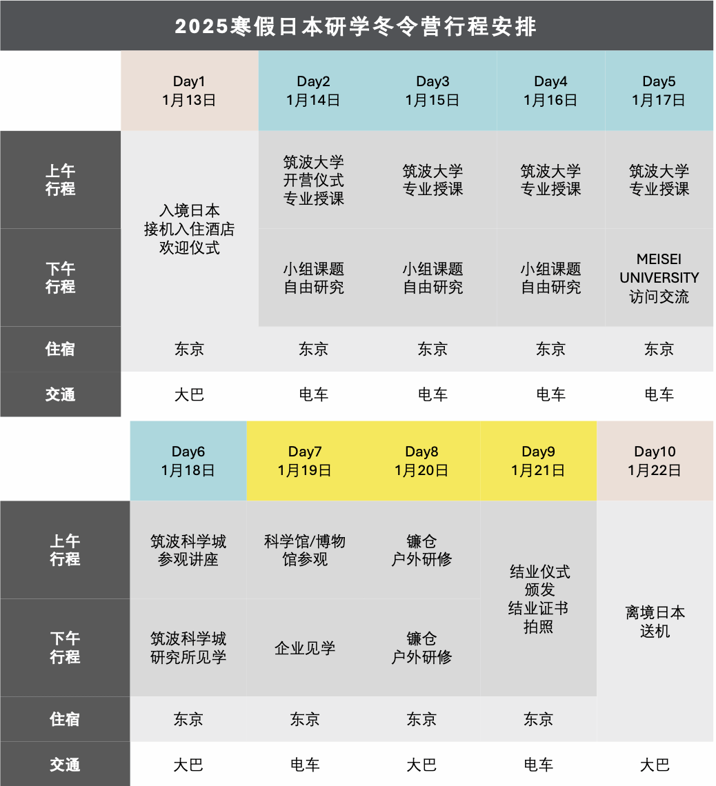 日本筑波大学科技冬令营为你提供了一个深入了解前沿科技、结识国际学友的绝佳机会。在这里,将积累丰富的学术经验,拓宽科技视野,激发未来潜力。期待参与!