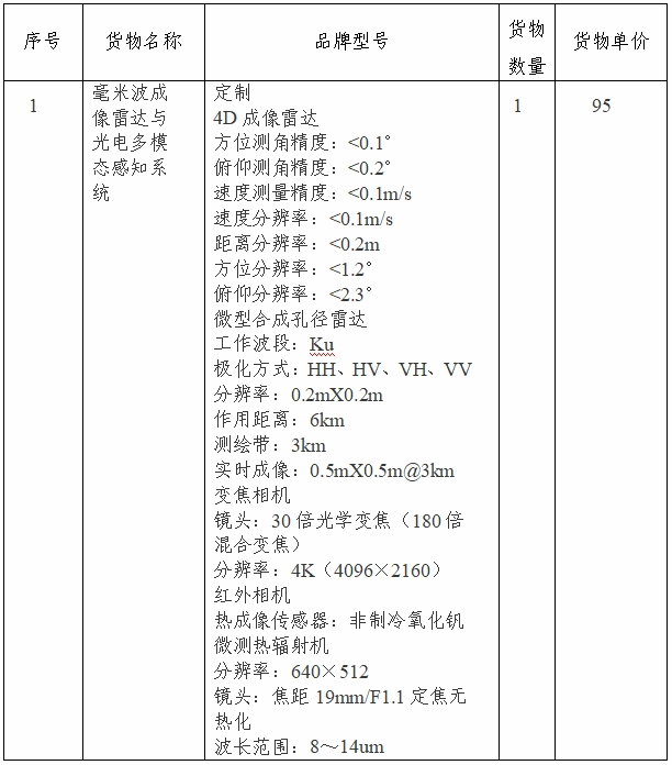 毫米波成像雷达与光电多模态感知系统