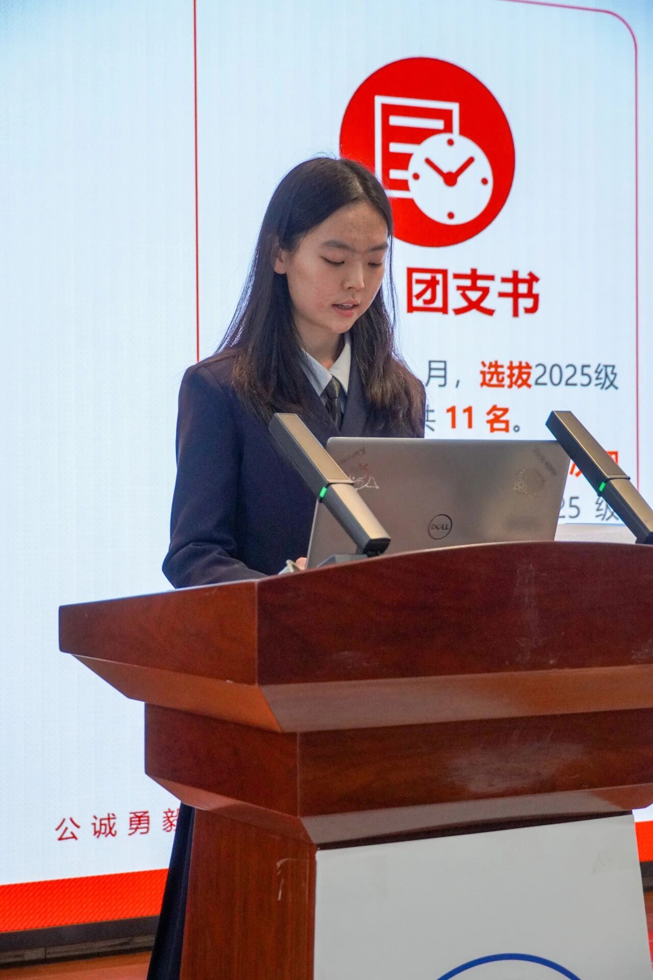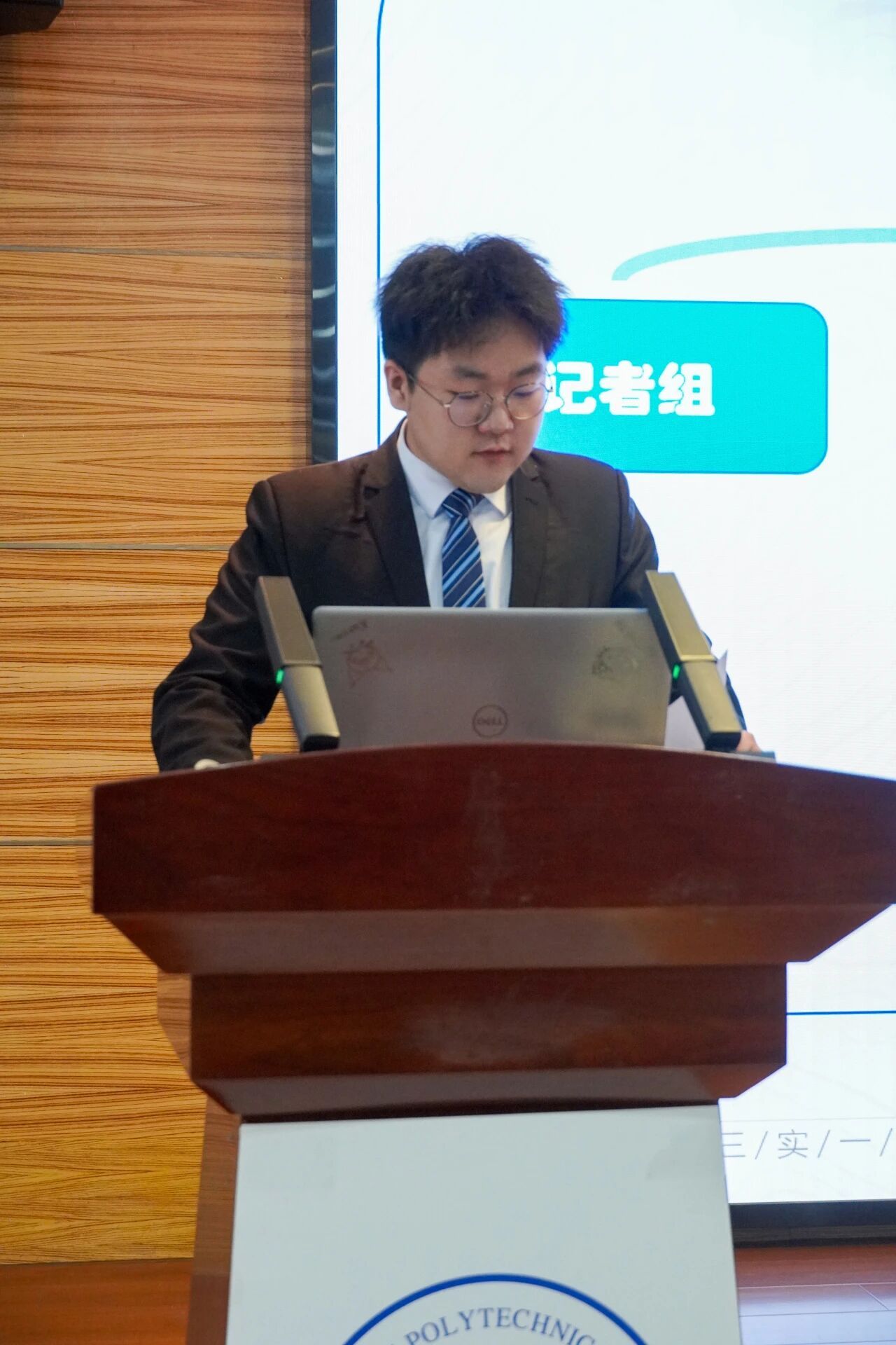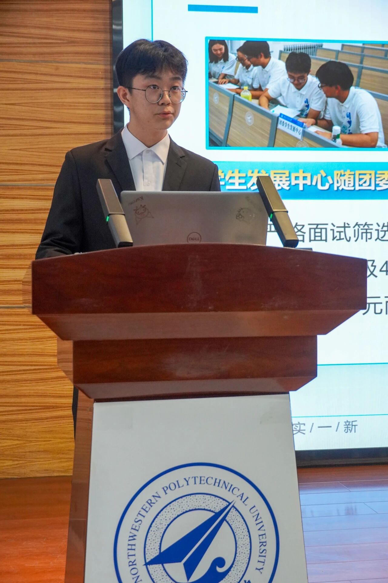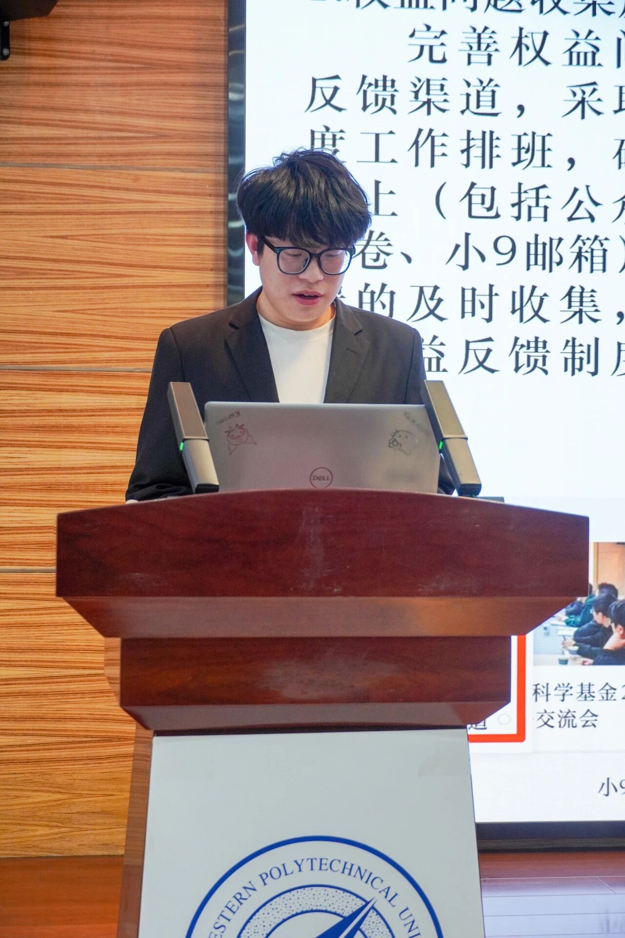会议第三项,各部门负责人进行本学年工作汇报。员工发展中心刘嘉豪、志工部周晶晶、组织部陈芊朵、权益中心吴胡奕、宣传中心高睿、文体中心车昊宇及学习实践部白皓瑞依次上台。他们的汇报内容涵盖微团课大赛、旱地冰壶大赛、元旦游园会、迎新晚会等多项活动的筹办工作,涉及团课组织、志愿时长评定、学业帮扶、公众号运营、海报设计等具体事务。各负责人结合部门工作概况,既展现了团队风采与协作精神,也坦诚指出工作中存在的不足,并对潜在问题进行了深刻反思,为后续工作开展明确了方向。
