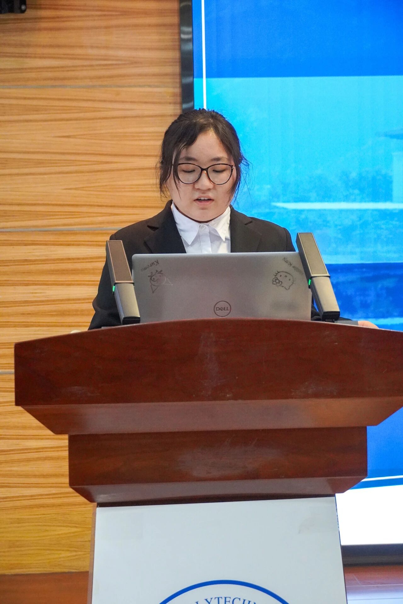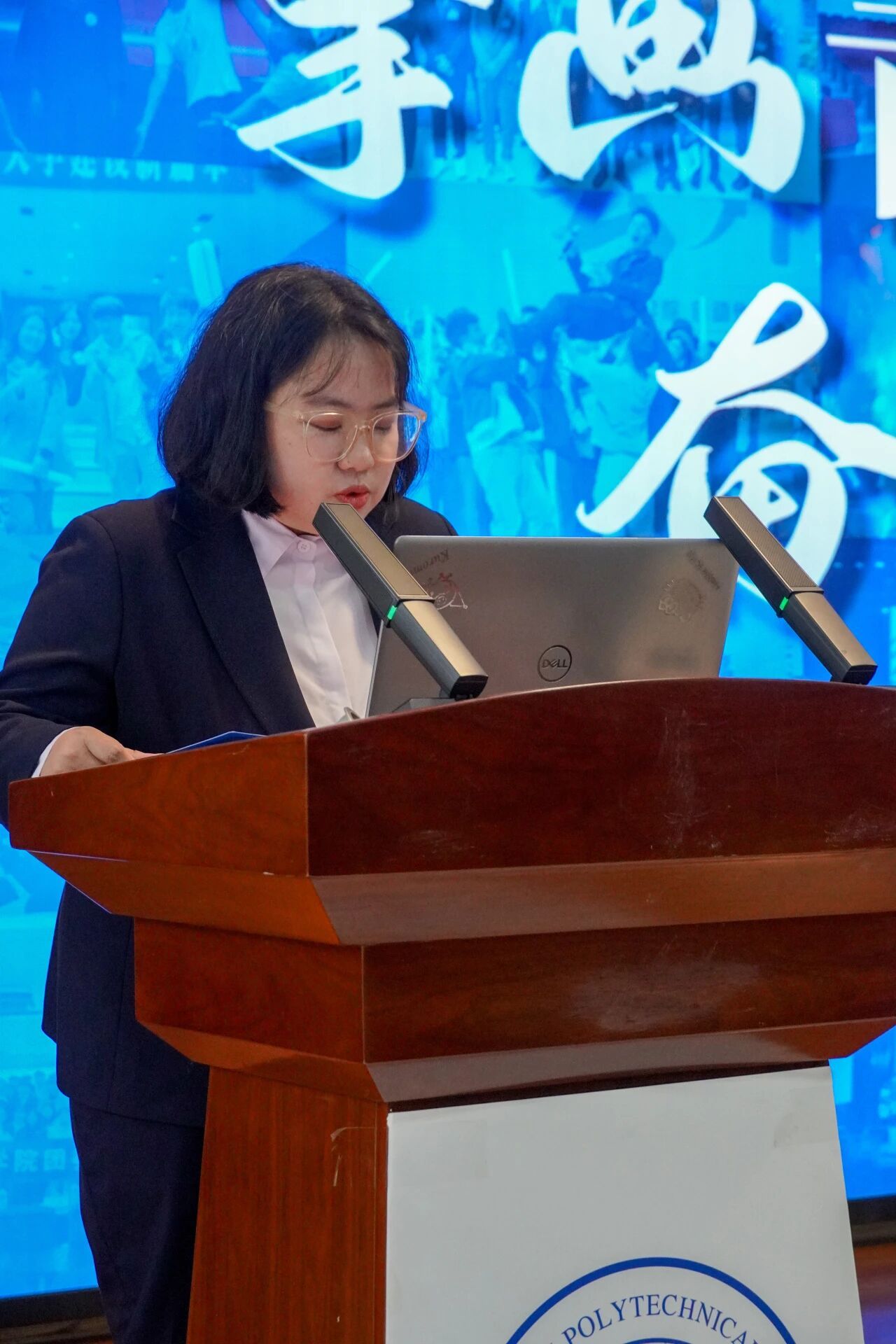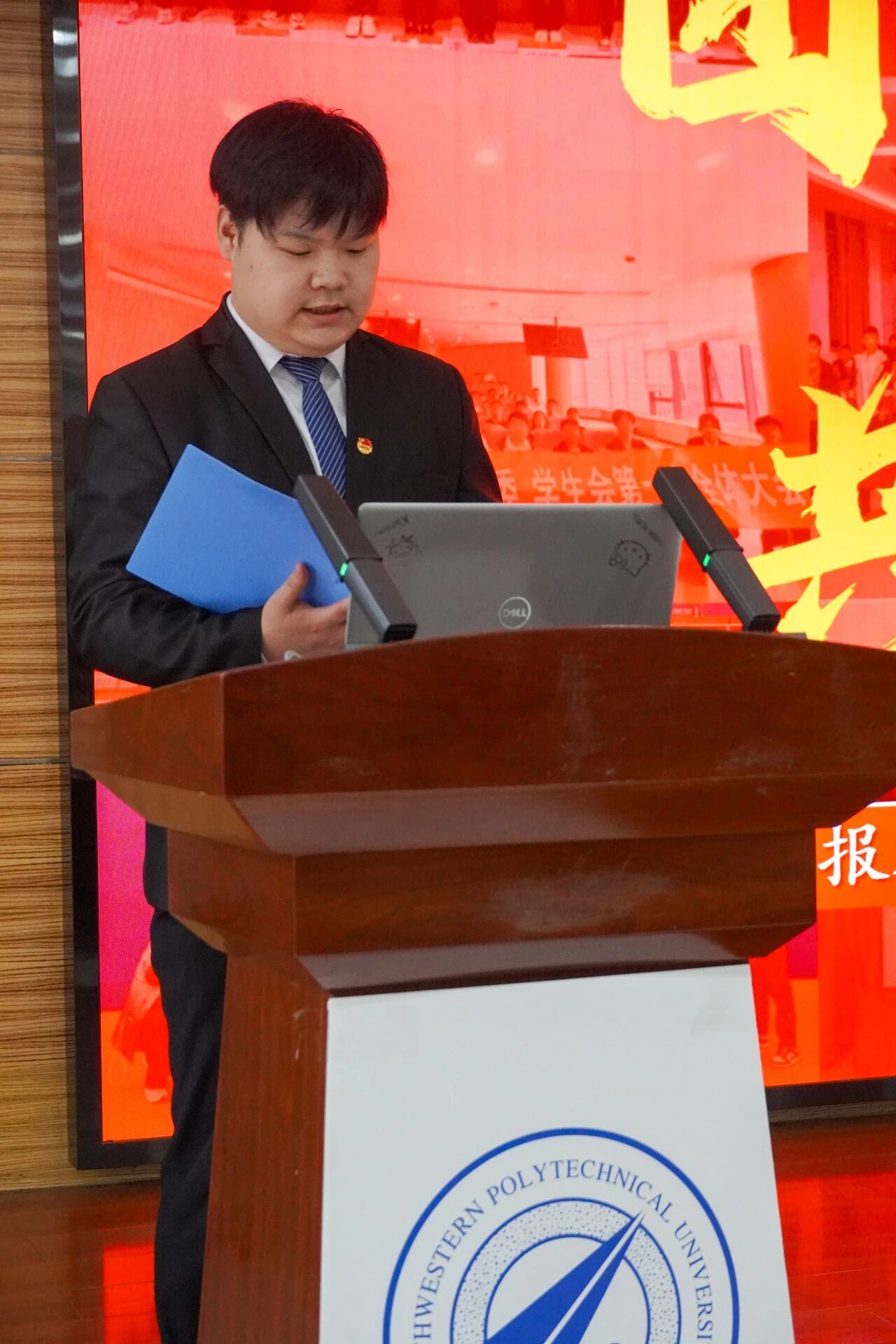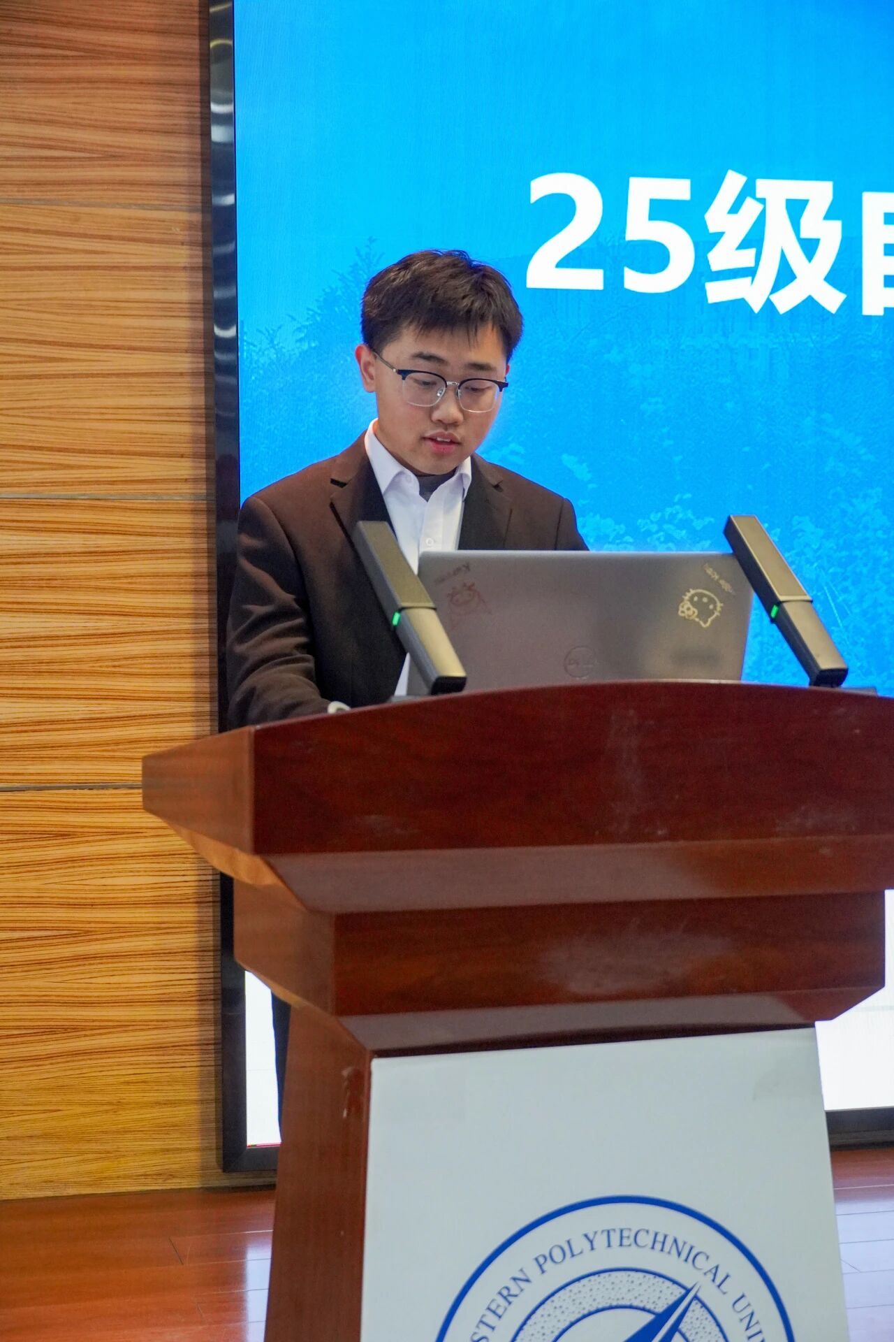 会议第三项,各部门负责人进行本学年工作汇报。员工发展中心刘嘉豪、志工部周晶晶、组织部陈芊朵、权益中心吴胡奕、宣传中心高睿、文体中心车昊宇及学习实践部白皓瑞依次上台。他们的汇报内容涵盖微团课大赛、旱地冰壶大赛、元旦游园会、迎新晚会等多项活动的筹办工作,涉及团课组织、志愿时长评定、学业帮扶、公众号运营、海报设计等具体事务。各负责人结合部门工作概况,既展现了团队风采与协作精神,也坦诚指出工作中存在的不足,并对潜在问题进行了深刻反思,为后续工作开展明确了方向。