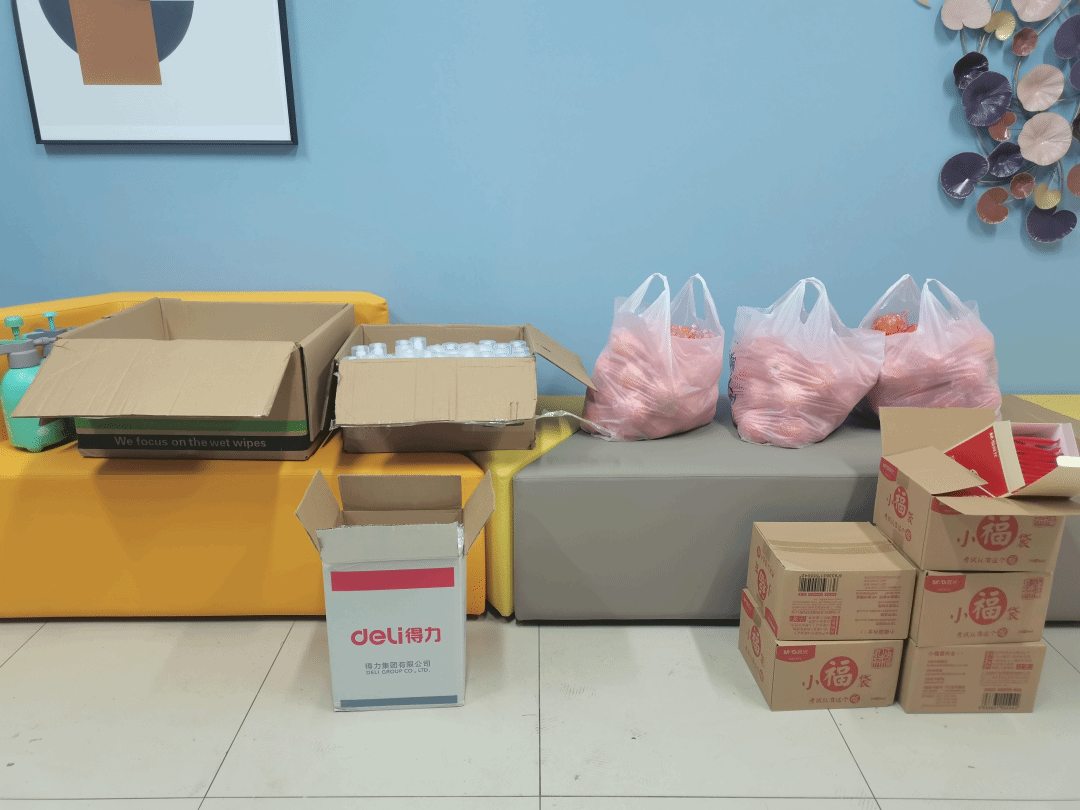 考研爱心物资内容丰富,其中包含实用文具包、文件袋、消毒用品、防疫水果等,提醒考研同学在最后冲刺的同时,也要做好防护,保持健康的体魄。由于同学们分散在多栋宿舍楼,为避免在物资分发过程中带来交叉感染等防疫风险,同时又能把温暖最快地送到每位考研学子手中,两位辅导员老师走入多栋宿舍楼,设置多个物资领取点,确保物资分发不漏一人。