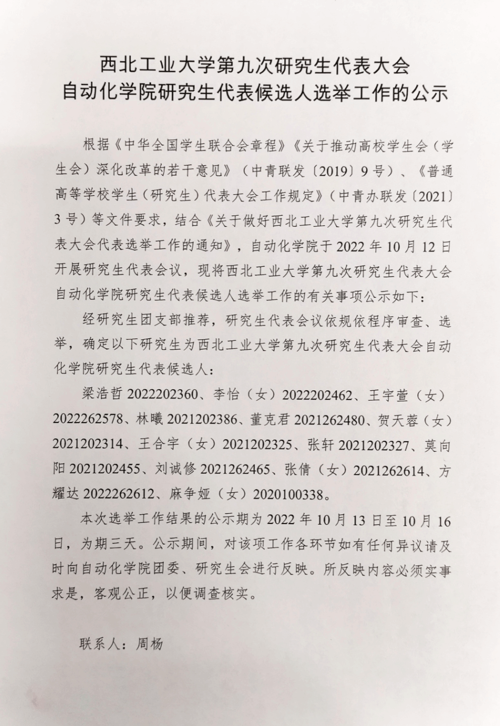 z6mg人生就是博官网第九次研究生代表大会公司研究生代表候选人选举工作的公示暨选举评审团公示